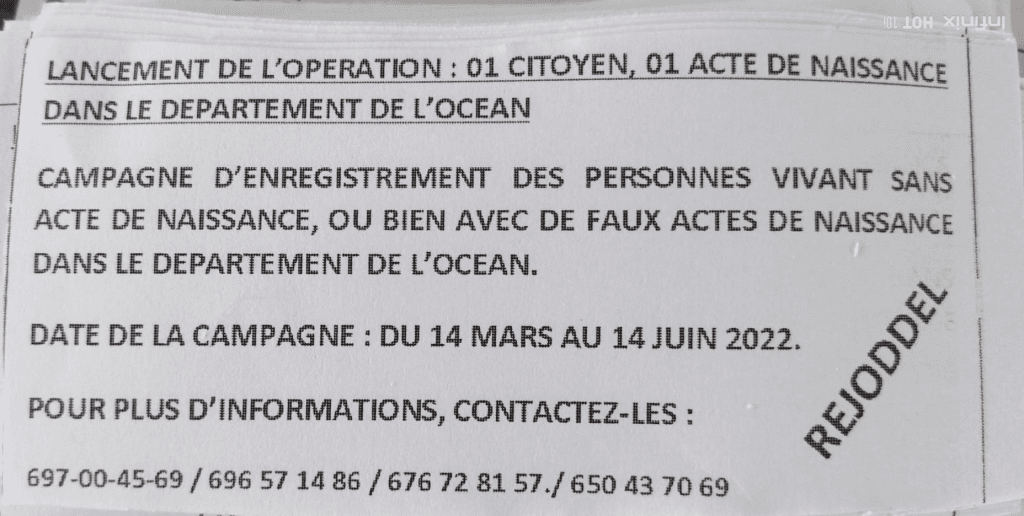 Campagne d’enregistrement des personnes vivant sans Actes de naissance organisée par le REJODDEL